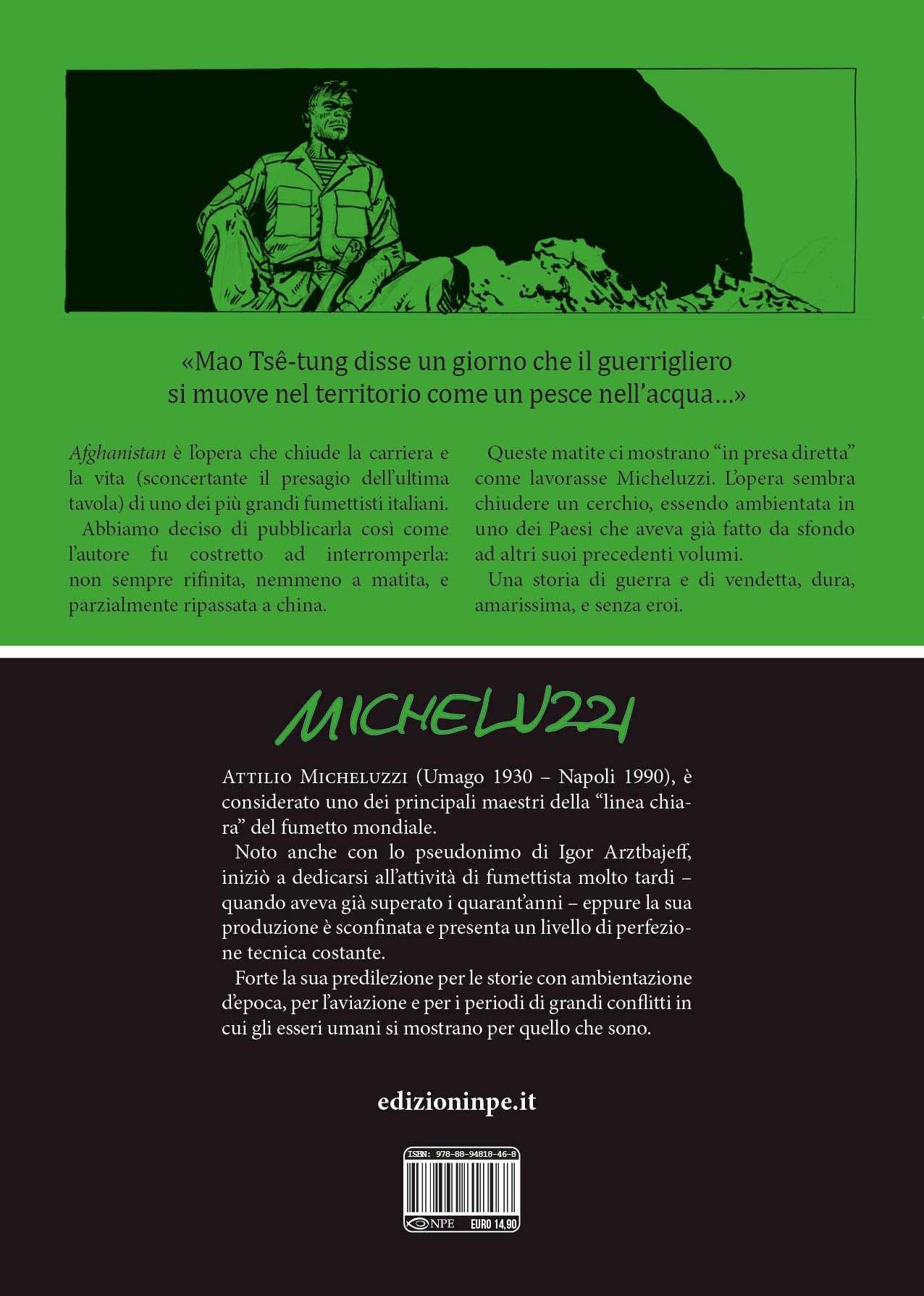 «"Afghanistan è l'opera che chiude la carriera e la vita (sconcertante il presagio dell'ultima tavola) di uno dei più grandi fumettisti italiani. Abbiamo deciso di pubblicarla così come l'autore fu costretto ad interromperla: non sempre rifinita, nemmeno a matita, e parzialmente ripassata a china. Queste matite ci mostrano "in presa diretta" come lavorasse Micheluzzi. L'opera sembra chiudere un cerchio, essendo ambientata in uno dei Paesi che aveva già fatto da sfondo ad altri suoi precedenti volumi. Una storia di guerra e di vendetta, dura, amarissima, e senza eroi».