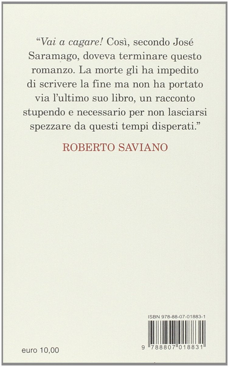 Artur paz semedo, impiegato di una storica fabbrica d'armi, le produzioni bellona sa., e intenditore di film bellici, viene profondamente colpito da alcune commoventi immagini de "l'espoir", di andré malraux, cui assiste casualmente. la successiva lettura del libro, che pare già provocare un'impercettibile incrinatura nelle sue certezze di amante appassionato delle armi da fuoco, e, poco dopo, il suggerimento della ex moglie felicia, una pacifista convinta, di investigare negli archivi dell'azienda per scoprire se le produzioni bellona sa. abbiano mai venduto armamenti ai fascisti lo avviano verso un'avventura che purtroppo non sapremo, pur potendolo immaginare da fedeli lettori di josé saramago, fin dove lo avrebbe condotto. con uno scritto di roberto saviano e un'illustrazione di günter grass.