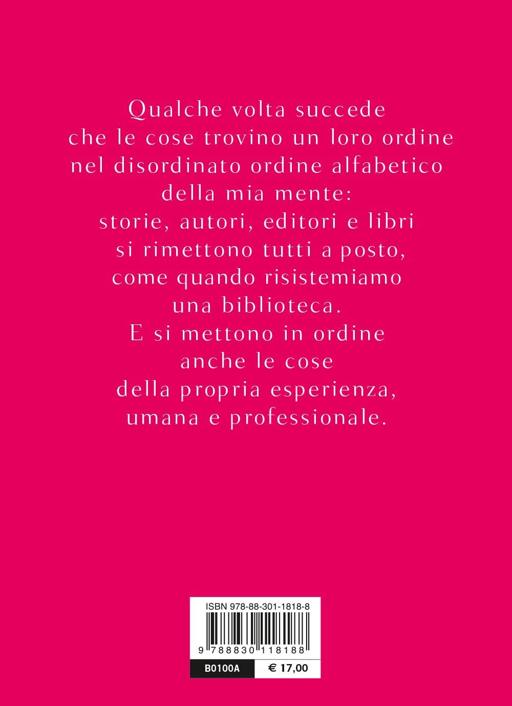 Grazia Gotti, cofondatrice della storica libreria per ragazzi bolognese Giannino Stoppani, racconta di sé e del suo lavoro attraverso un alfabeto utile a decifrare il mondo dei libri con occhi aperti e curiosi. A come America, B come best seller, C come Cina ma anche Calvino, e poi P come poesia, R come Rodari, U come utopia, V come vendere e via fino a W come web: le storie lette si intrecciano a quelle di persone, autori, librai, editori, illustratori, incontrati in un continuo viaggio fisico e mentale alla ricerca di risposte alla domanda prima: come si fa a far crescere il mercato editoriale, e quindi la cultura di un paese? Certo partendo dai bambini, e dai libri pensati per loro.