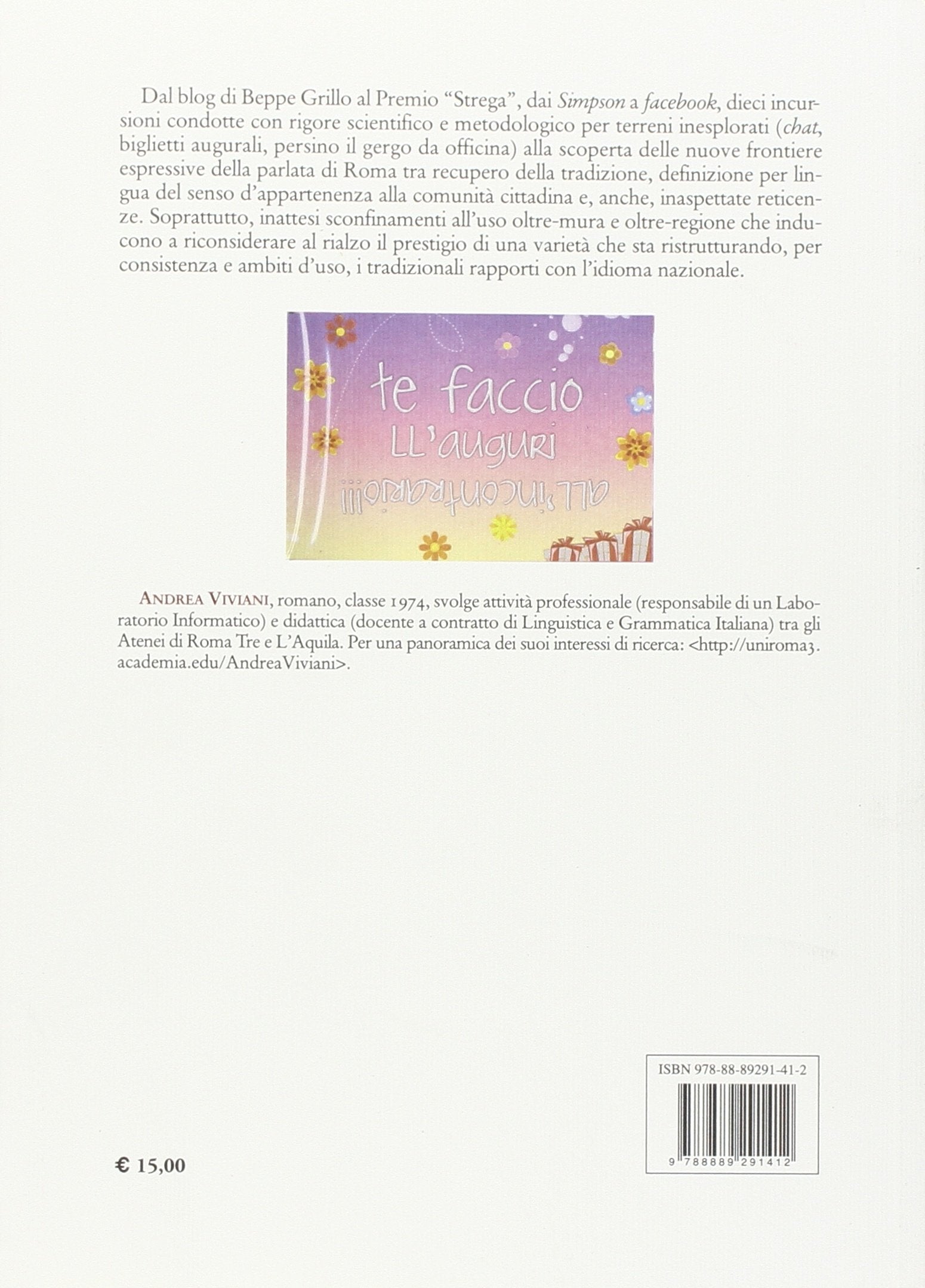 Dal blog di Beppe Grillo al Premio "Strega", dai Simpson a facebook, dieci incursioni condotte con rigore scientifico e metodologico per terreni inesplorati (chat, biglietti augurali, persino il gergo da officina) alla scoperta delle nuove frontiere espressive della parlata di Roma. Il libro di Andrea Viviani si muove tra recupero della tradizione, definizione per lingua del senso d'appartenenza alla comunità cittadina e, anche, inaspettate reticenze. Con inattesi sconfinamenti all'uso oltre-mura e oltre-regione che inducono a riconsiderare al rialzo il prestigio di una varietà che sta ristrutturando, per consistenza e ambiti d'uso, i tradizionali rapporti con l'idioma nazionale. Il dialetto di Roma, come è stato dimostrato da una ormai lunga serie di contributi, si pone in un continuum rispetto alla varietà di italiano usato nella capitale e ha un rapporto particolarissimo, per certi aspetti simbiotico, con l'italiano contemporaneo. Questo consente la risalita di elementi locali anche in contesti insospettati, presso tra parlanti e scriventi romani che pure sono molto lontani dalla dialettofonia.