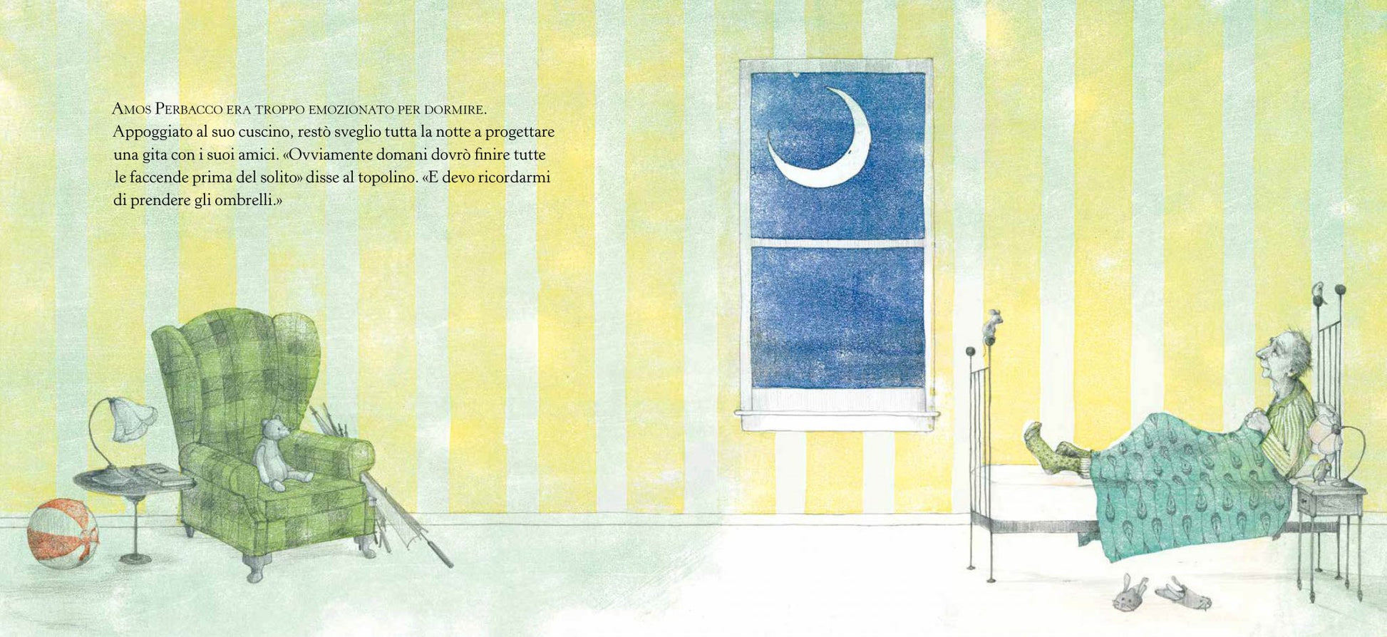 Amos Perbacco e i suoi amici sono tornati con una nuova, commovente avventura! Il premuroso e gentile guardiano dello zoo trascorre la notte a preparare una meravigliosa sorpresa per tutti i suoi amici. La mattina dopo, però, è così stanco che si addormenta durante la colazione e… finisce per perdere l’autobus! Ora non avrà più tempo per la sorpresa che aveva programmato per i suoi amici. A meno che... forse proprio gli animali dello zoo potranno aiutarlo! Età di lettura: da 3 anni.