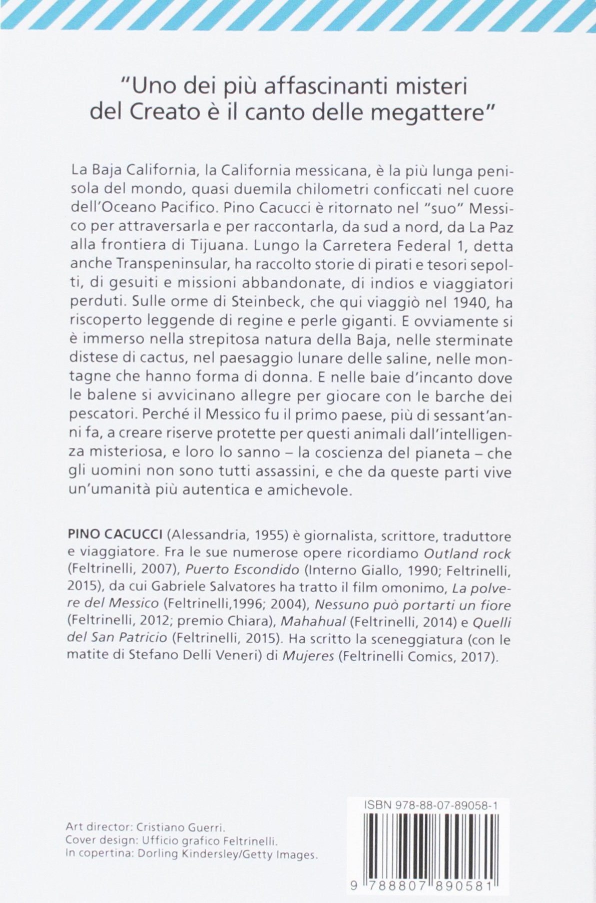 Tu dici california e pensi al golden gate di san francisco, alle spiagge sabbiose di malibu, agli studi cinematografici di hollywood. e invece, appena più giù, c'è un'altra california, che a metà ottocento seppe resistere all'avanzata delle truppe statunitensi e conservare la propria integrità e indipendenza. è la baja california, la california messicana: la più lunga penisola del mondo, quasi duemila chilometri conficcati nel cuore dell'oceano pacifico. pino cacucci è ritornato nel "suo" messico per attraversarla e per raccontarla, da sud a nord, da la paz alla frontiera di tijuana. lungo la carretera federal i, detta anche transpeninsular, ha raccolto storie di pirati e tesori sepolti, di gesuiti e missioni abbandonate, di indios e viaggiatori perduti. sulle orme di steinbeck, che qui viaggiò nel 1940, ha riscoperto leggende di regine e perle giganti. e ovviamente si è immerso nella strepitosa natura della baja, nelle sterminate distese di cactus, nel paesaggio lunare delle saline, nelle montagne che hanno forma di donna. e nelle baie d'incanto dove le balene si avvicinano allegre per giocare con le barche dei pescatori. perché il messico fu il primo paese, più di sessantanni fa, a creare riserve protette per questi animali dall'intelligenza misteriosa, e loro lo sanno - lo hanno certamente capito - che gli uomini non sono tutti assassini, e che da queste parti vive un'umanità più autentica, un'umanità più amichevole.
