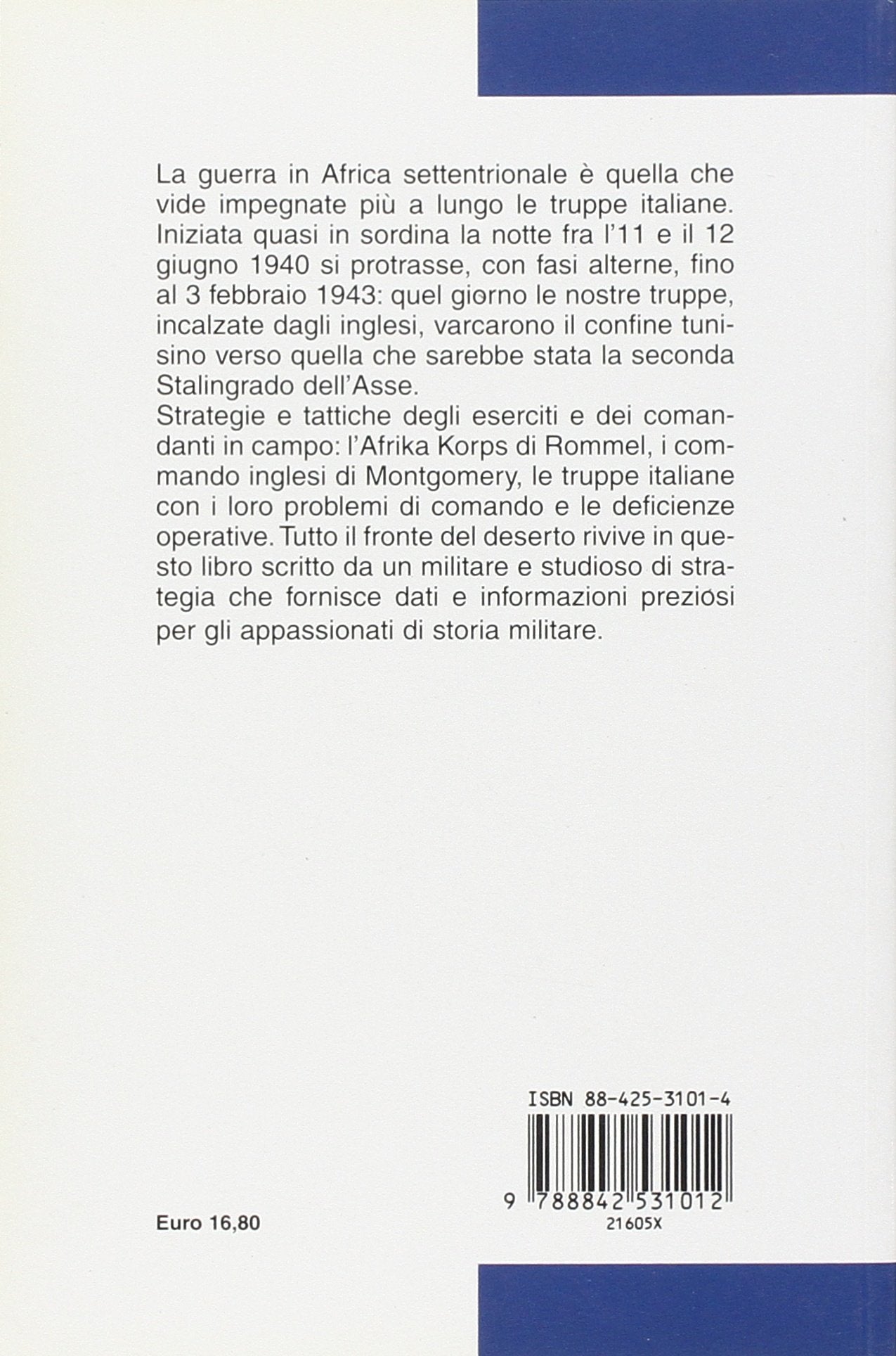 la guerra in africa settentrionale è quella che vide impegnate più a lungo le nostre truppe durante il secondo conflitto mondiale. iniziata quasi in sordina la notte tra l'11 e il 12 giugno 1940, si protrasse con fasi alterne per oltre due anni, fino al 3 febbraio 1943: quel giorno, infatti, le nostre truppe ormai in rotta varcarono il confine tunisino incalzate dagli inglesi, verso quella che sarebbe poi stata definita la seconda stalingrado dell'asse.