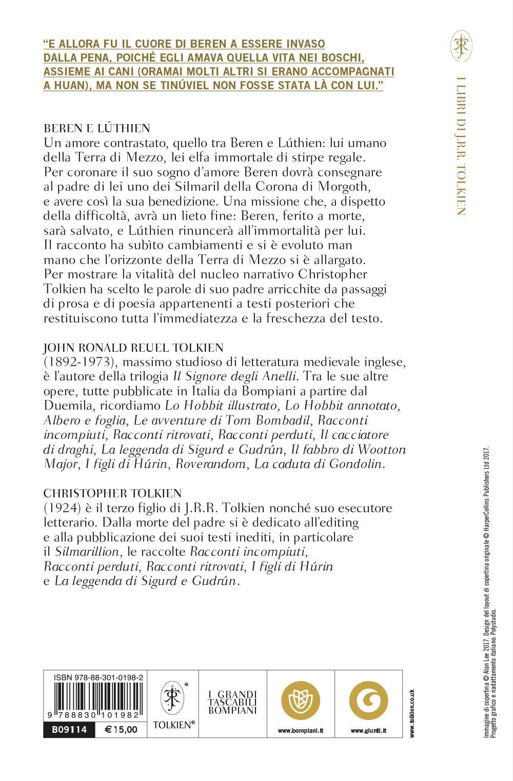 Un amore contrastato, quello tra Beren e Lúthien: lui umano della Terra di Mezzo, lei elfa immortale di stirpe regale. Per coronare il suo sogno d'amore Beren dovrà consegnare al padre di lei uno dei Silmaril della Corona di Morgoth, e avere così la sua benedizione. Una missione che, a dispetto della difficoltà, avrà un lieto fine: Beren, ferito a morte, sarà salvato, e Lúthien rinuncerà all'immortalità per lui. Il racconto ha subìto cambiamenti e si è evoluto man mano che l'orizzonte della Terra di Mezzo si è allargato. Per mostrare la vitalità del nucleo narrativo Christopher Tolkien ha scelto le parole di suo padre arricchite da passaggi di prosa e di poesia appartenenti a testi posteriori che restituiscono tutta l'immediatezza e la freschezza del testo.