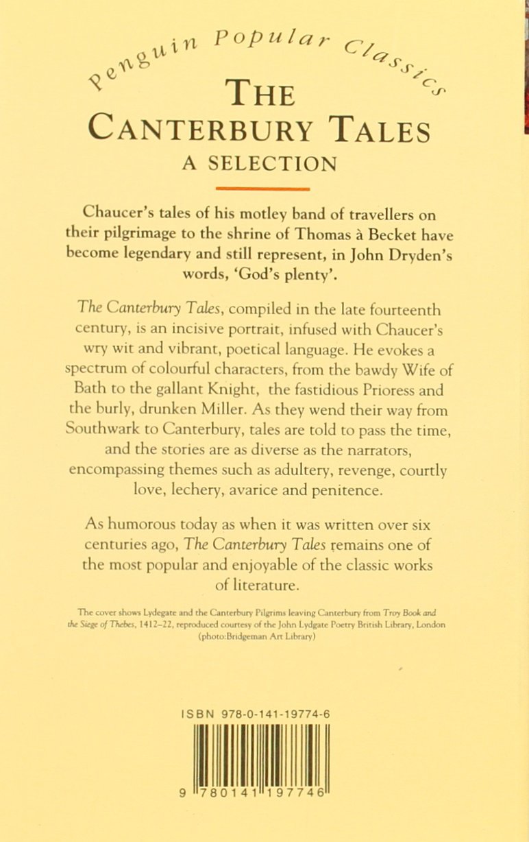 The Canterbury Tales, compiled in the late fourteenth century, is an incisive portrait, infused with Chaucer's wry wit and vibrant, poetical languauge. He evokes a spectrum of colourful characters, from the bawdy Wife of Bath to the gallant Knight, the fastidious Prioress and the burly, drunken Miller. As they wend their way from Southwark to Canterbury, tales are told to pass the time, and the stories are as diverse as the narrators, encompassing themes such as adultery, revenge, courtly love, lechery, avarice and penitence. As humorous today as when it was written over six centuries ago, The Canterbury Tales remains one of the most popular and enjoyable of the classic works of literature.
