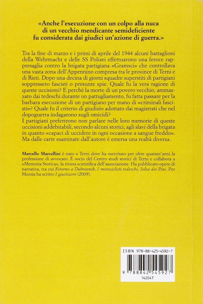 Tra la fine di marzo e i primi di aprile del 1944 alcuni battaglioni della Wehrmacht e delle SS Polizei effettuarono una feroce rappresaglia contro la brigata partigiana «Gramsci» che controllava una vasta zona dell’Appennino compresa tra le province di Terni e di Rieti. Dopo una decina di giorni squadre superstiti di partigiani soppressero fascisti o presunte spie. Quale fu la vera ragione di queste uccisioni? E perché la morte di un povero vecchio, ammazzato dai tedeschi durante un pattugliamento, fu fatta passare per la barbara esecuzione di un partigiano per mano di «criminali fascisti»? Quale fu il criterio di giudizio adottato dai magistrati che nel dopoguerra indagarono sugli omicidi? I partigiani preferirono non parlare nelle loro memorie di queste uccisioni addebitabili, secondo alcuni storici, agli slavi della brigata in quanto «capaci di uccidere in ogni occasione a sangue freddo». Ma dalle carte esaminate dall’autore è emersa una realtà diversa.