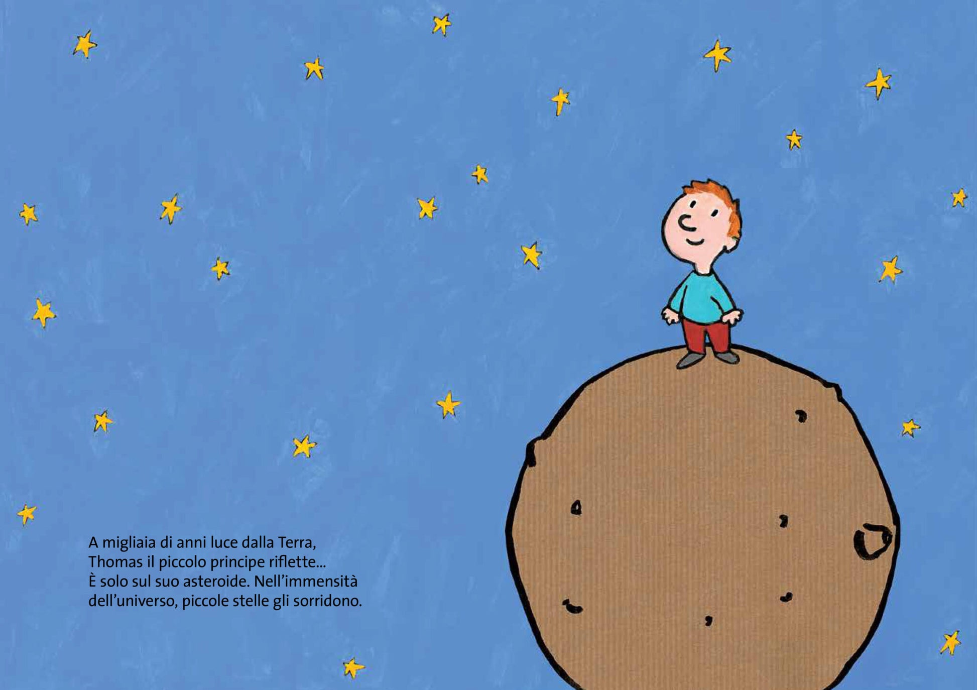 Al rientro da scuola, Thomas trova un enorme regalo nella sua camera da letto: è una sorpresa da parte del nonno! Rapidamente, strappa la carta da regalo e trova una grande scatola… completamente vuota. Thomas ne resta molto deluso. A un certo punto, però, un raggio di sole attraversa la stanza e illumina la grande scatola. Thomas si avvicina, ci sale sopra e, lentamente, scivola in un altro mondo dove sarà l'eroe di favolose avventure, tra mammut, montagne innevate, deserti e razzi intergalattici. Età di lettura: da 4 anni.