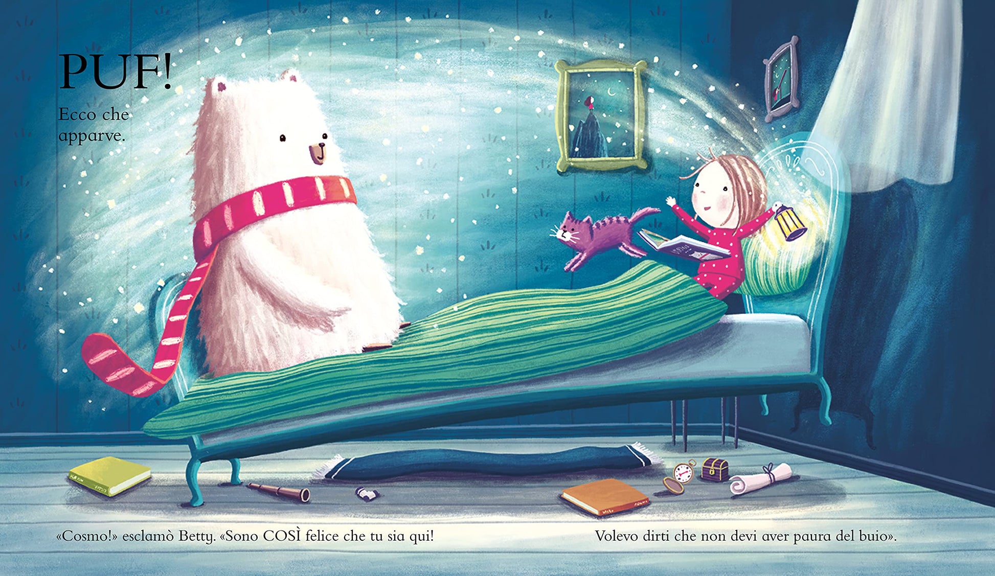 Betty ama la notte, perché porta con sé le storie più magiche. L'orso Cosmo, invece, è molto spaventato dal buio... Un dolce racconto che mostra come ognuno di noi può trovare dentro di sé la forza per affrontare le proprie paure. Età di lettura: da 5 anni.